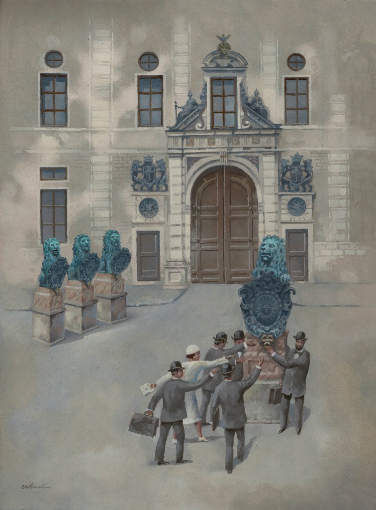 Dar, în mod uimitor, monarhul l-a plăcut pe băiat. Nu numai că l-a iertat, dar i-a și dat banii de recompensă. Studentului care își imaginase că va trebui să-și petreacă viitorul într-o celulă întunecată a închisorii, cu greu îi venea să creadă norocul său. Cu genunchii slabi, s-a împiedicat apoi afară. Într-o mână strângea sacul cu bani, cu cealaltă se ținea obosit de botul unuia dintre puternicii lei de bronz. Oamenii s-au oprit și l-au aplaudat. Și au început să creadă: dacă mângâi botul leului, vei fi foarte norocos într-o zi, poate chiar să aduci acasă un sac de bani.