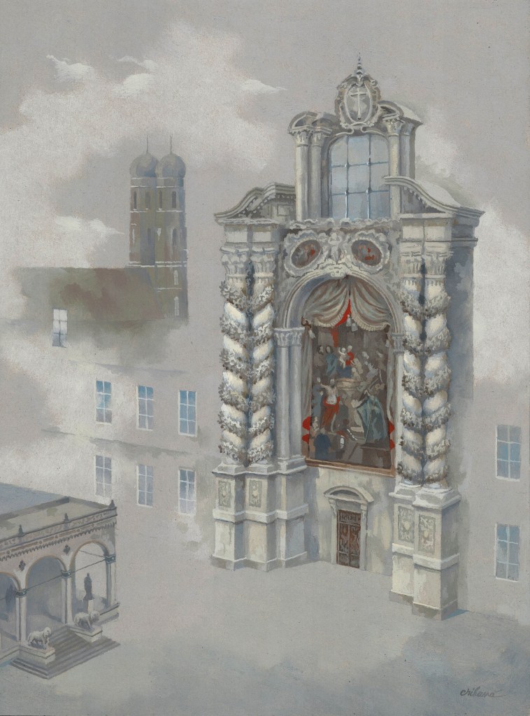 Lucrarea este dedicată bisericii Heilig-Geist din München (dreapta spate). Din aceasta am extras ca simbol mai special steaua care se află deasupra fațadei bisericii.