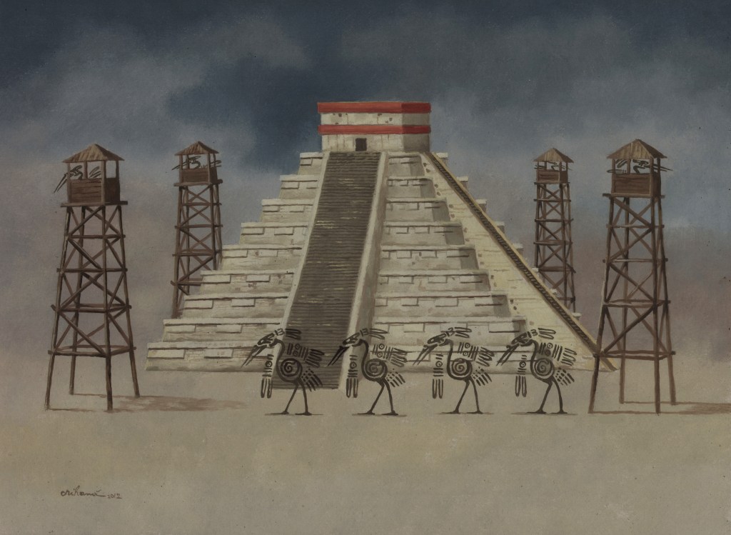 Transpuse într-o compoziţie voit naivă, ca în basmele copiilor, zig-zagurile zidului chinezesc şi roaba supradimensionată (“Roaba”) corespund într-o anumită măsură unor imagini care se creează în mintea noastră, unor asociaţii involuntare având şi conotaţii hazlii. Artistul recurge la cele mai variate procedee plastice aşa cum se întâmplă şi in “Teoria Copernic-Nostradamus şi primul ceas de buzunar”; punerea în evidenţă a simultaneităţii unor evenimente, descoperiri, pare aleatorie, şochează, dar în ultimă instanţă ne pune pe gânduri. Lucrarea sugerează o sprinţară mişcare, ca într-un joc de copii, având ca “mecanism” declanşator un banal obiect cotidian înscris însă într-o mişcare a cosmică a timpului, totul fiind figurat prin inspirate procedee grafice.