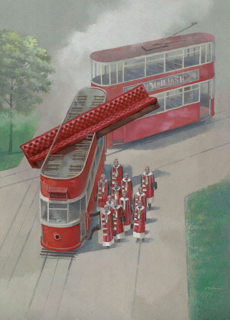 11. Lords at Tram Station, 40/30cm, oil on cardboard, 2023