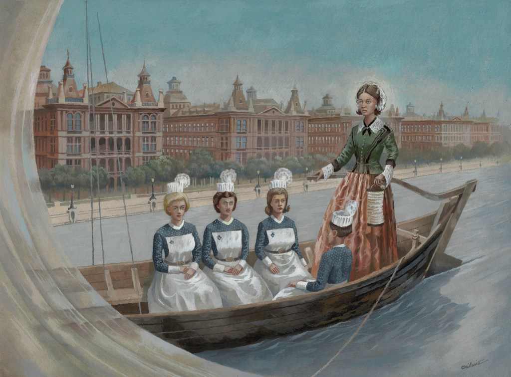 13. Florence Nightingale at St Thomas Hospital, 30/40cm, oil on cardboard, 2023