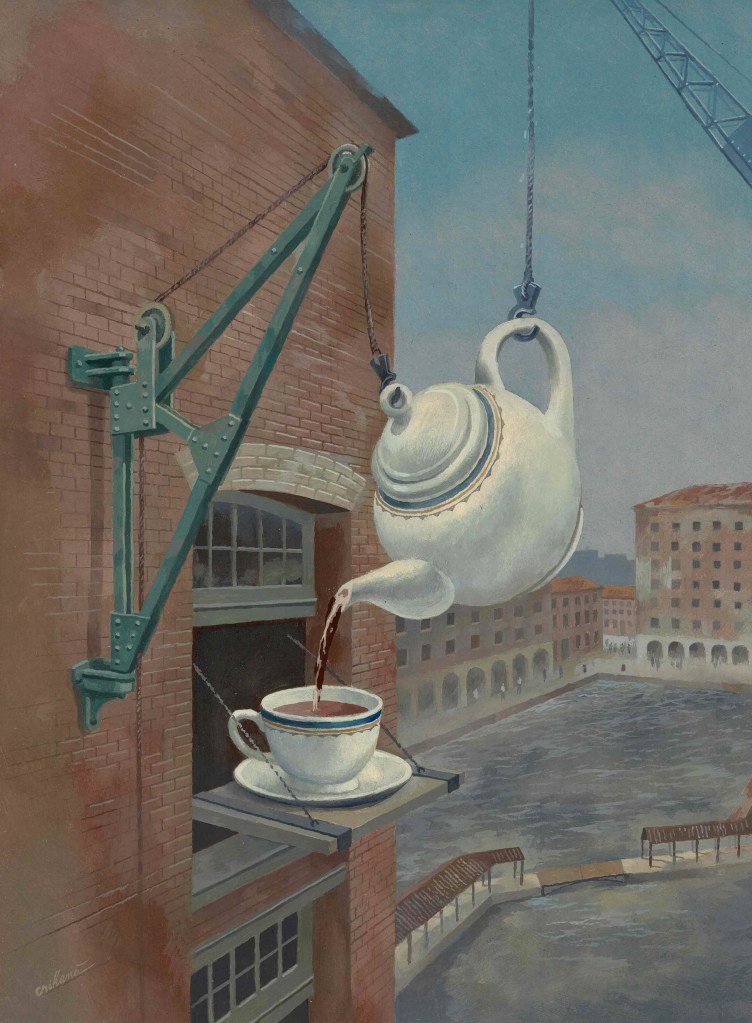 St Catherine’s Docks were built close to the Tower of London Bridge and the Tower of London in Tower Hamlets in 1828. There were two basins with an entrance through the Thames lock. Steam engines kept the water level in these basins constant so as not to disrupt port operations. Thus the activity along the banks of the Thames could stop. Not long after, however, the docks ended up no longer meeting the demands. In 1968 the commercial activity ceased. Today the buildings host luxury homes and the pools – yachts. The few remaining lithographs with this space do not show the work equipment that seems absent. However, with a closer look, you can discover the wall jacks and hydraulic cranes left to this day between the balconies and windows of the apartments. They were not dismantled in order not to weaken the strength of the building. The main cargo transhipped throughout the port’s existence was tea.