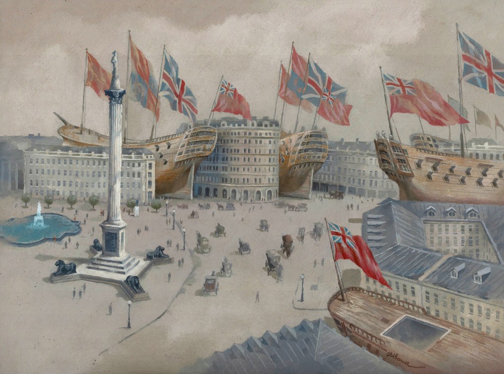 3. Royal Fleet at Trafalgar Square, 30/40cm, oil on cardboard, 2022