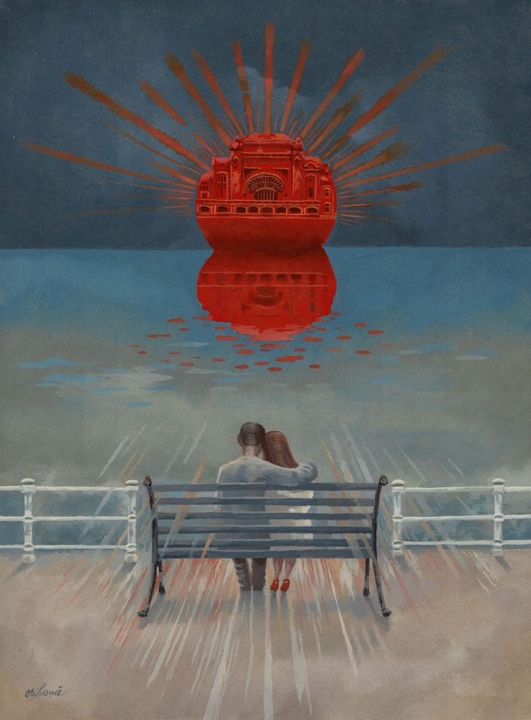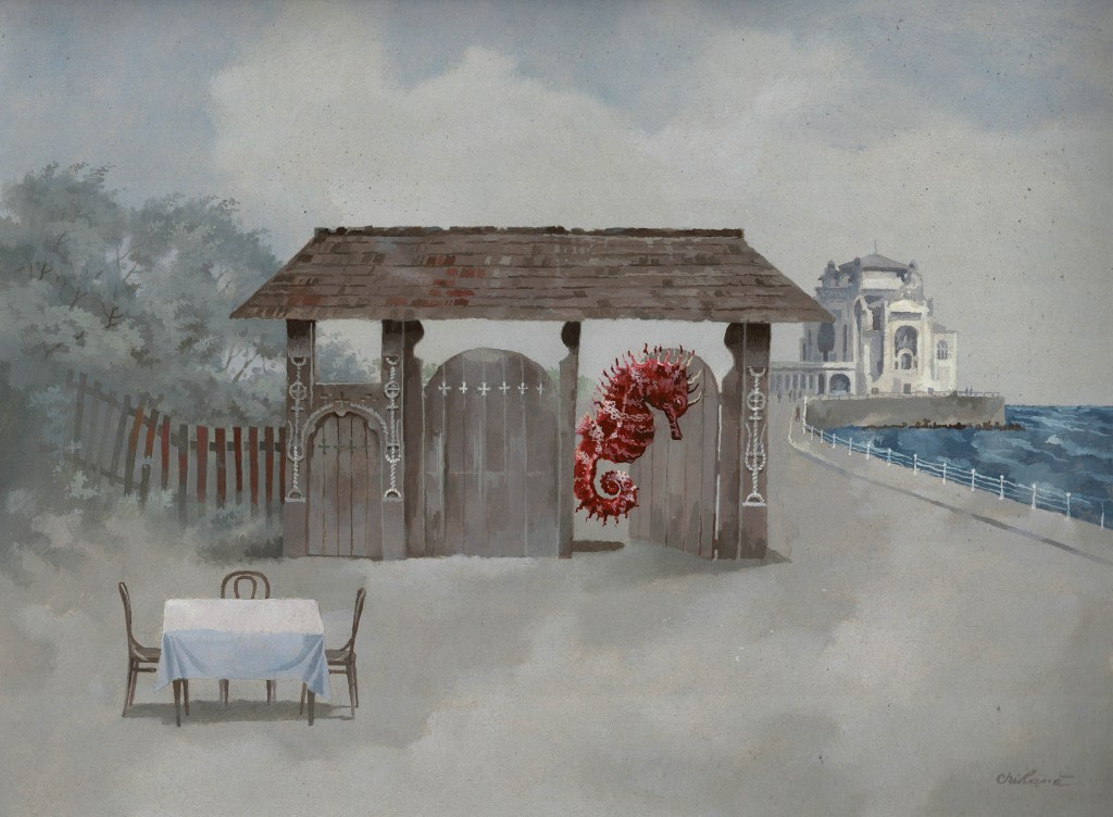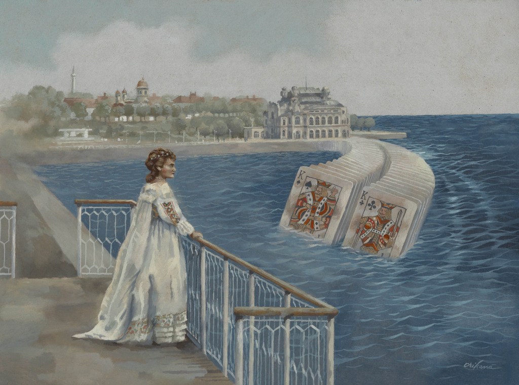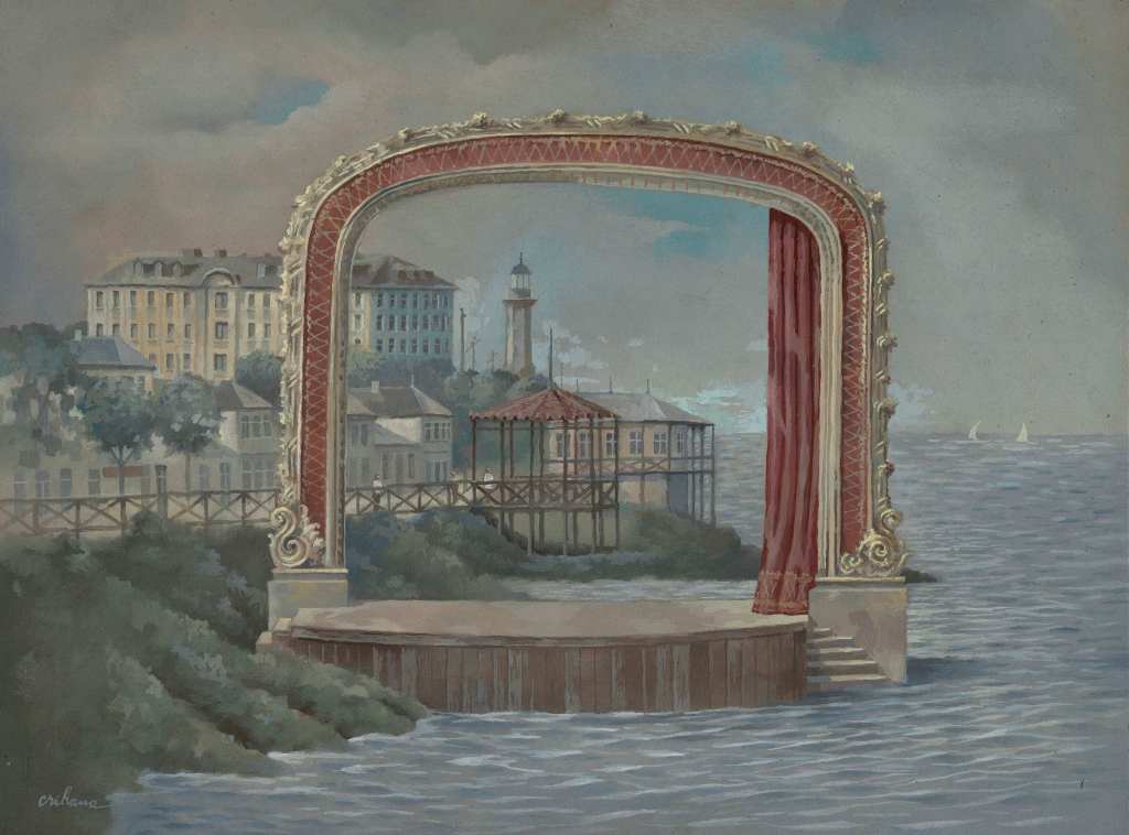 Artistul a extras scena de la etajul cazinoului și a dispus-o în apa mării, lângă mal. Prin centrul scenei se poate vedea clădirea veche a cazinoului – cazinul, sugerând că totul a devenit o poveste bună de adus la teatru.