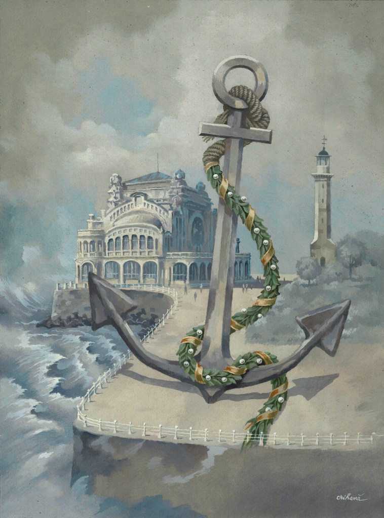 Ancora este amplasată de artist în zona în care se află Monumentul Marinarului. Piesa este frumos împodobită cu o ghirlandă preluată din decorațiunile exterioare ale clădirii cazinoului. În compoziție apare și Farul Genovez, aflat în zonă.